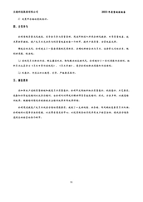 貝德科技集團(tuán)2023質(zhì)量誠(chéng)信報(bào)告