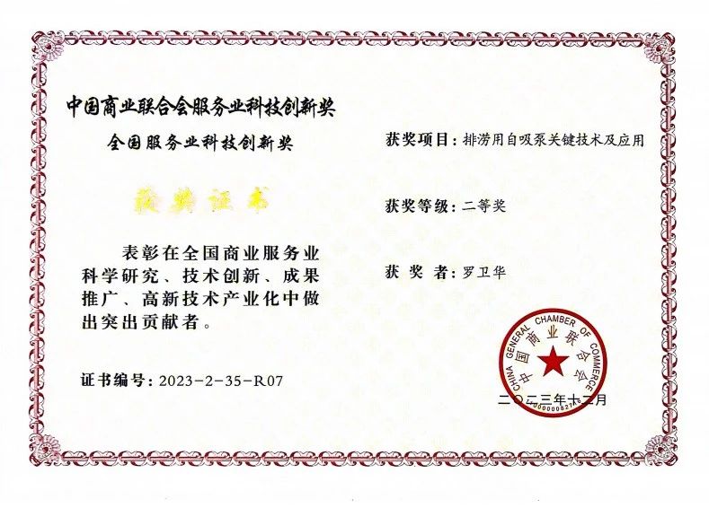 喜報 | 排澇自吸泵獲全國服務業科技創新獎!