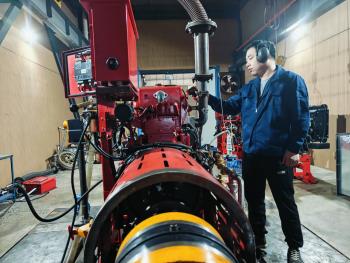5月26日,在貝德科技集團有限公司(以下簡稱“貝德科技集團”)的消防泵專用柴油機實驗室內,技術員柴飛華正在開展消防泵專用柴油機的耐久力、溫升等測試。
