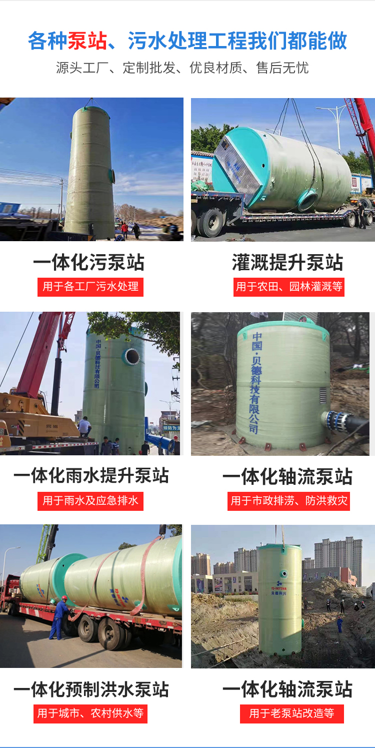 玻璃鋼一體化泵站是一款專為解決城市雨水收集和排澇以及城鎮污水提升而設計的新型污水處理設備。泵坑設計帶有一體化的排放連接。泵站為地埋式、泵站主體由泵站筒、潛水泵、耦合裝置、管道、閥門、液位傳感器、控制系統、粉碎型格柵和通風系統等部件組成。是一種使用方便,質量可靠,土建工作少,成本較低的新型一體化泵站設備,容積優化是其顯著的特征,可以作為中小型混凝土泵站的替代品。